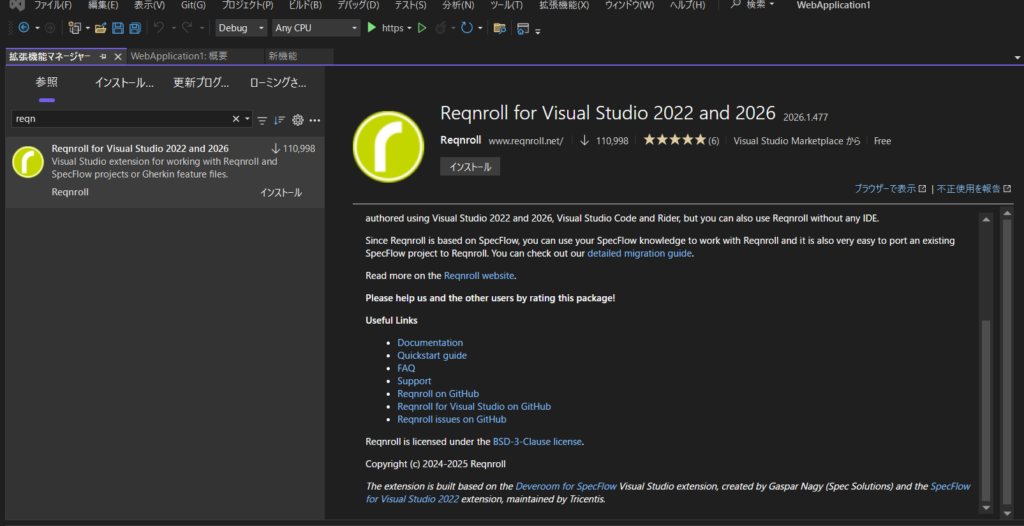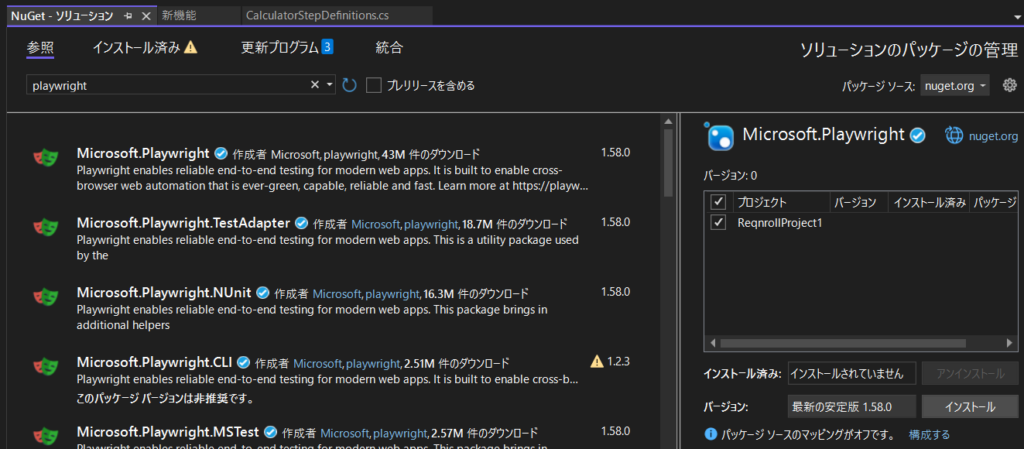 - Reqnrollを検索し、インストールします。